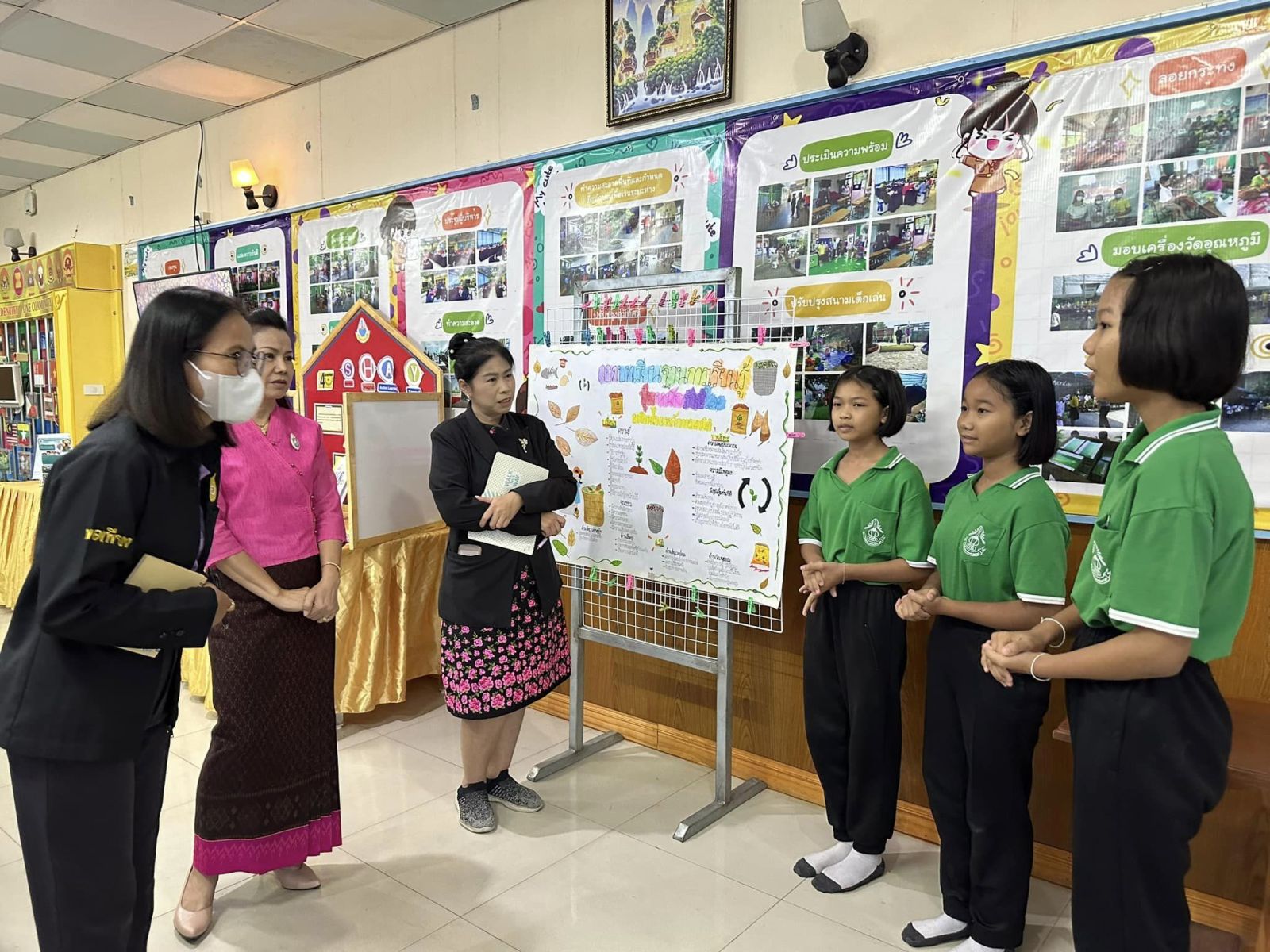 วันที่ 22 สิงหาคม 2566 นางไพฤทธิ พูลผล ผู้อำนวยการโรงเรียน และนางสาวพัฒนี คงไพศาล รองผู้อำนวยการโรงเรียน พร้อมด้วยคณะครูและบุคลากรทางการศึกษาโรงเรียนวัดหนองคณฑี(พลานุกูล) ให้การต้อนรับ ดร.ลัดดา จุลวงศ์ ผู้อำนวยการโรงเรียนสัตยาไส วิทยากรพี่เลี้ยง และนางสาวพณพร เกษตรเวทิน ศึกษานิเทศก์ชำนาญการ สพป.สระบุรี เขต 1 ในการติดตามการดำเนินงานขับเคลื่อนศูนย์การเรียนรู้ตามหลักปรัชญาเศรษฐกิจพอเพียงในสถานศึกษาของโรงเรียนคุณภาพ CONNEXT ED ซึ่งมีนักเรียนแกนนำได้นำเสนอกิจกรรมตามฐานการเรียนรู้ต่างๆ นอกจากนี้ท่านคณะกรรมการยังร่วมกันให้คำแนะนำเพิ่มเติมและสร้างความเข้าใจเกี่ยวกับเกณฑ์การประเมินศรร. เพื่อให้ทางโรงเรียนวางแผนการพัฒนาเป็นศูนย์การเรียนรู้ตามหลักปรัชญาของเศรษฐกิจพอเพียงเป็นลำดับต่อไป ทางโรงเรียนขอขอบพระคุณเป็นอย่างสูง