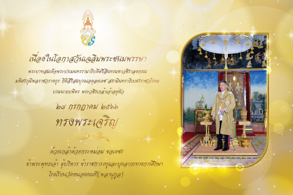 ด้วยเกล้าด้วยกระหม่อม ขอเดชะ ข้าพระพุทธเจ้า คณะผู้บริหาร ข้าราชการครูและบุคลากรทางการศึกษา โรงเรียนวัดหนองคณฑี(พลานุกูล)