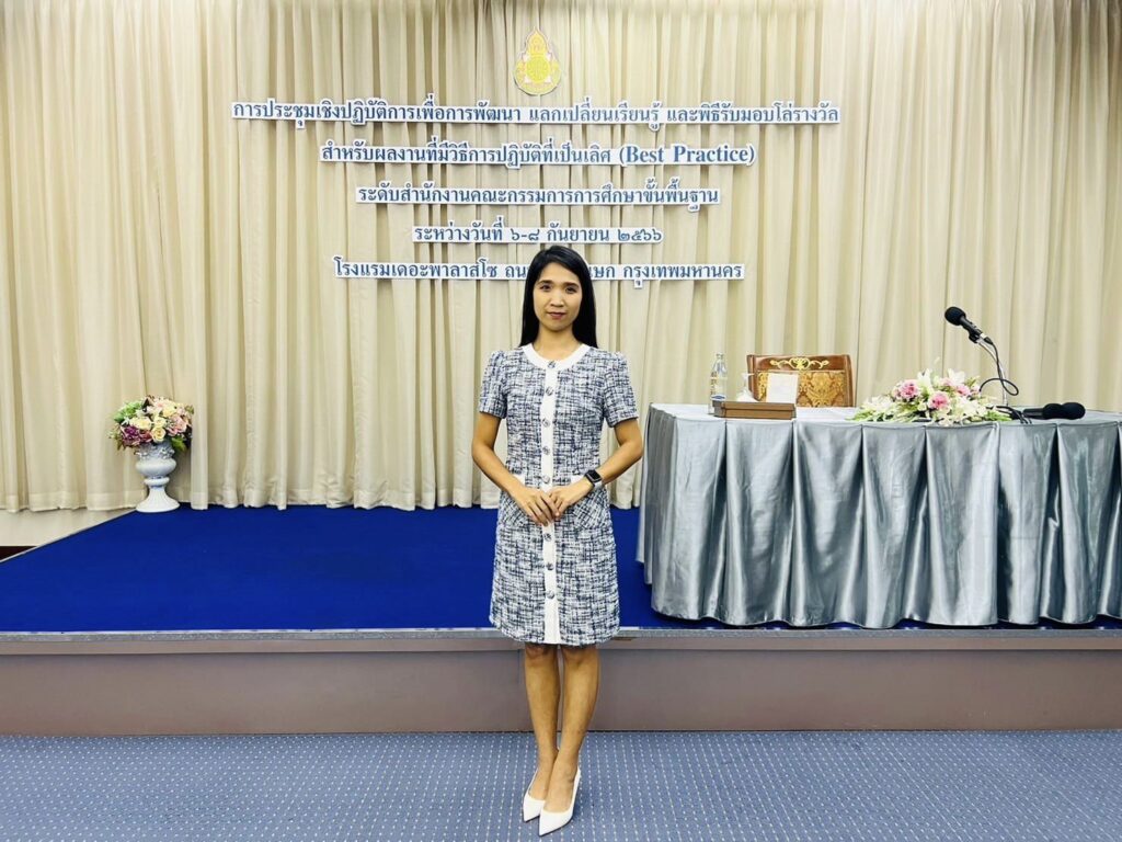 วันที่ 6-8 กันยายน 2566 นางสาวนันทวรรณ บริสุทธิ์บุณฑริก เข้าร่วมประชุมเชิงปฏิบัติการเพื่อพัฒนา แลกเปลี่ยนเรียนรู้ และพิธีรับมอบโล่รางวัล สำหรับผลงานที่มีวิธีปฎิบัติที่่เป็นเลิศ (Best Practice) ระดับสำนักงานคณะกรรมการการศึกษาขั้นพื้นฐาน ณ โรงแรมเดอะพาลาสโซ จ.กรุงเทพมหานคร