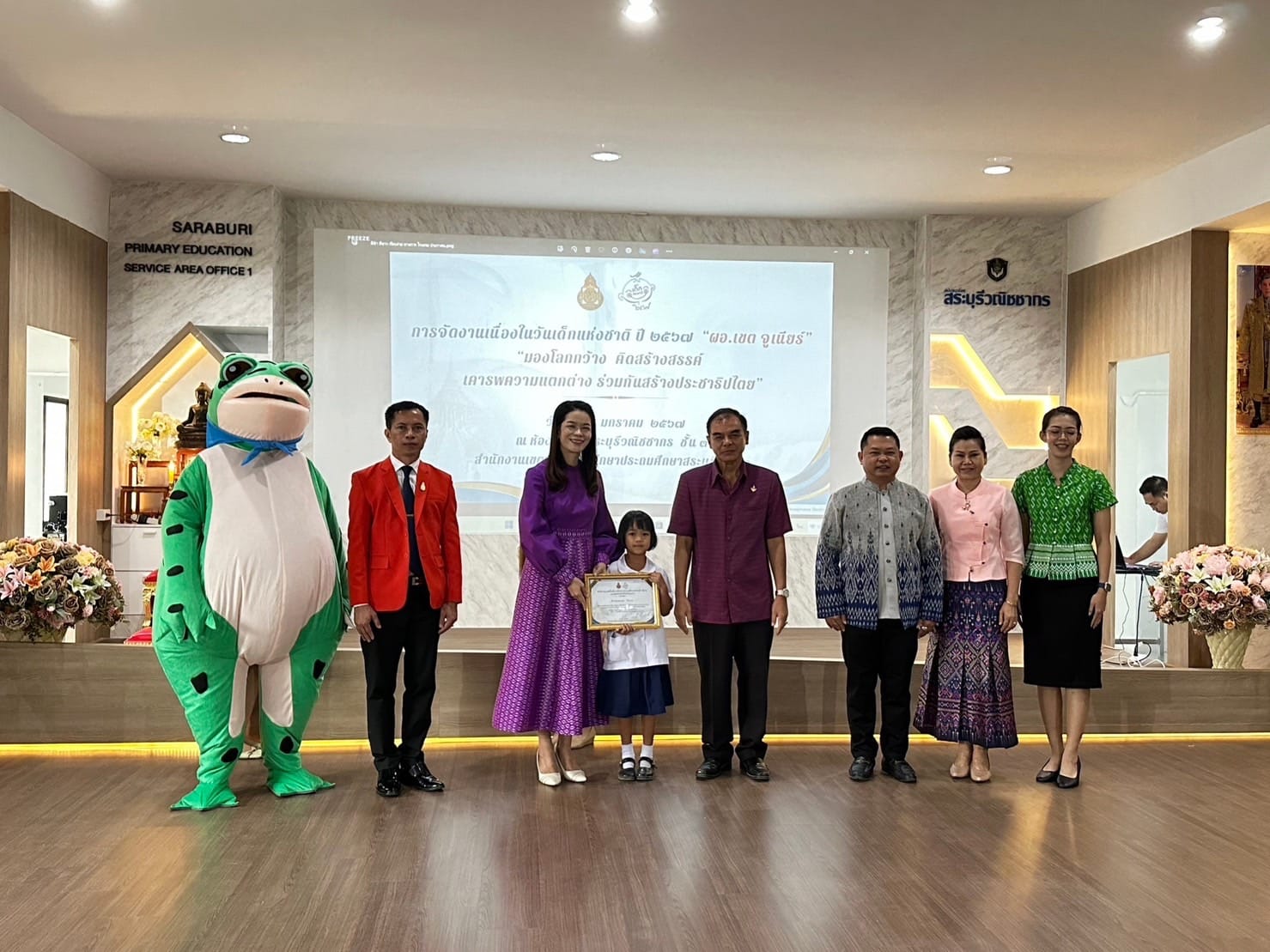 วันที่ 11 มกราคม 2567 นางไพฤทธิ พูลผล ผู้อำนวยการโรงเรียนวัดหนองคณฑี(พลานุกูล) พร้อมด้วยนางสาวพรวิฉัตร์ แก้วมาลี รองผู้อำนวยการโรงเรียน นำนักเรียนชั้นประถมศึกษาปีที่ 3/2 เข้ารับทุนการศึกษา โดยมี ดร. วิภา สายรัตน์ ผู้อำนวยการสำนักงานเขตพื้นที่การศึกษาประถมศึกษาสระบุรี เขต 1 เป็นประธานเปิดงานวันเด็กแห่งชาติ ปี 2567 “ผอ.เขต จูเนียร์” “มองโลกกว้าง คิดสร้างสรรค์ เคารพความแตกต่าง ร่วมกันสร้างประชาธิปไตย” ในงานมีการมอบทุนการศึกษา การมอบเกียรติบัตรเด็กดีศรีเสมา กิจกรรมเล่นเกมส์ตอบคำถาม และที่สำคัญการนั่งเก้าอี้ ผอ.เขต ( “ผอ.เขต จูเนียร์” ) ณ สำนักงานเขตพื้นที่การศึกษาประถมศึกษาสระบุรีเขต 1