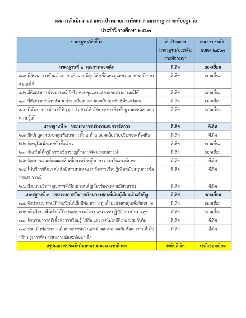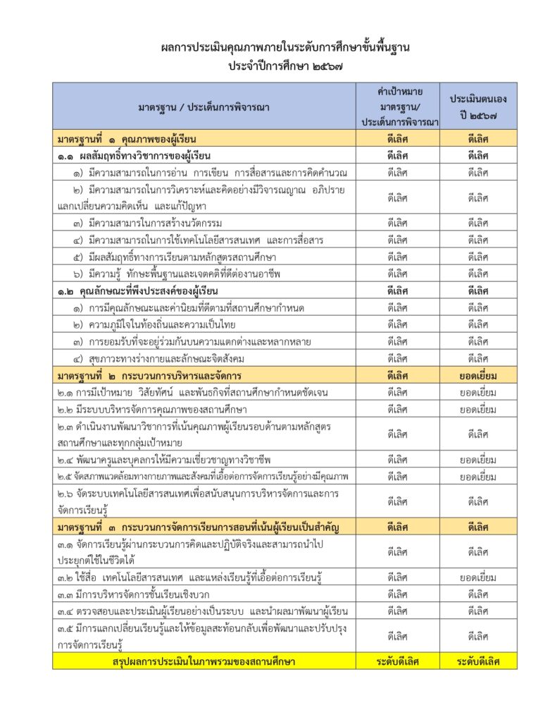 ประกาศผลการประเมินคุณภาพภายใน ประจำปีการศึกษา 2567