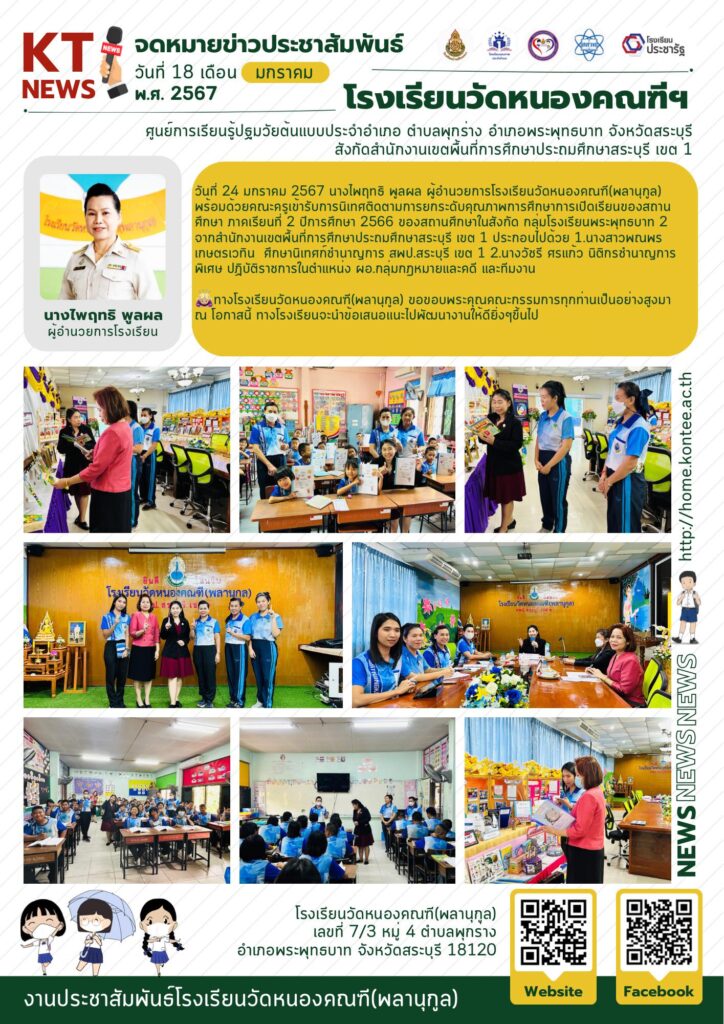 วันที่ 24 มกราคม 2567 นางไพฤทธิ พูลผล ผู้อำนวยการโรงเรียนวัดหนองคณฑี(พลานุกูล)