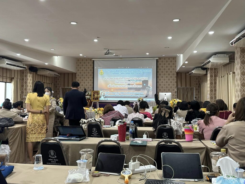 วันที่ 8-9 พฤษภาคม 2566 นางไพฤทธิ พูลผล ผู้อำนวยการโรงเรียนวัดหนองคณฑี(พลานุกูล) มอบหมายให้ นายมานพ บุญเพ็ง เข้าร่วมอบรมเชิงปฏิบัติการให้ความรู้และปฏิบัติในการถ่ายทำวีดีโอเพื่อพัฒนางานด้านการสื่อสาร และการอบรมเชิงปฏิบัติการครูและบุคลากรทางการศึกษา เพื่อสร้างเครือข่ายการประชาสัมพันธ์ ระหว่างสำนักงานเขตพื้นที่การศึกษาประถมศึกษาสระบุรี เขต 1 และสถานศึกษาในสังกัด ให้สามารถเผยแพร่ผลการบริหารจัดการและการจัดการเรียนรู้ ต่อสาธารณะได้อย่างมีประสิทธิภาพ เพื่อพัฒนาสื่อการเรียนรู้ Active Learning และสื่อเทคโนโลยีดิจิทัล เพื่อส่งเสริม สนับสนุนการใช้งานแฟลตฟอร์มการเรียนรู้ และสื่อเทคโนโลยีดิจิทัล ณ ห้องประชุมอดิเรกสาร สำนักงานเขตพื้นที่การศึกษาประถมศึกษาสระบุรี เขต 1