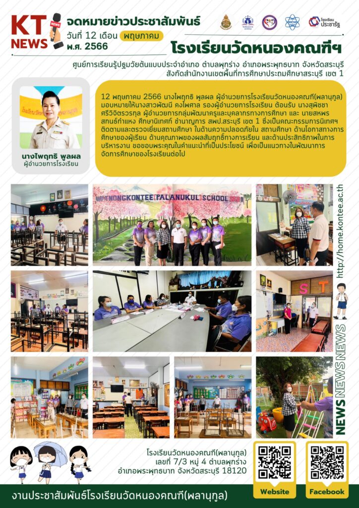 นางไพฤทธิ พูลผล ผู้อำนวยการโรงเรียนวัดหนองคณฑี(พลานุกูล) มอบหมายให้นางสาวพัฒนี คงไพศาล รองผู้อำนวยการโรงเรียน ต้อนรับ นางสุพิชชา ศรีวิจิตรวรกุล ผู้อำนวยการกลุ่มพัฒนาครูและบุคลากรทางการศึกษา และ นายสหพร สกนธ์กำแหง ศึกษานิเทศก์ ชำนาญการ สพป.สระบุรี เขต 1 ซึ่งเป็นคณะกรรมการนิเทศฯ ติดตามและตรวจเยี่ยมสถานศึกษา ในด้านความปลอดภัยใน สถานศึกษา ด้านโอกาสทางการศึกษาของผู้เรียน ด้านคุณภาพของผลสัมฤทธิ์ทางการเรียน และด้านประสิทธิภาพในการบริหารงาน ขอขอบพระคุณในคำแนะนำที่เป็นประโยชน์ เพื่อเป็นแนวทางในพัฒนาการจัดการศึกษาของโรงเรียนต่อไป